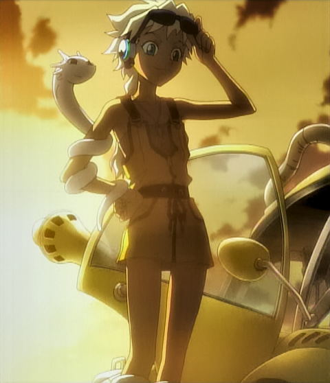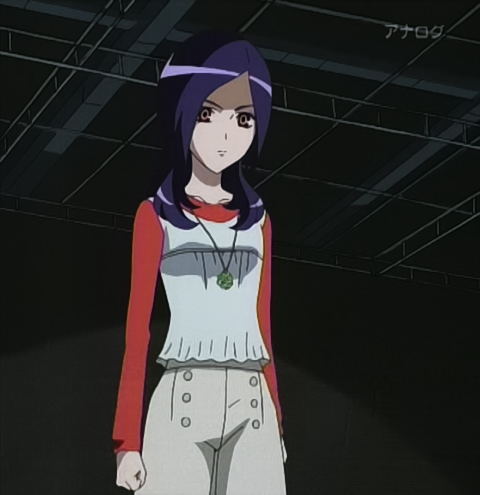 そうそう。トリニティのミユキさん以外の二人が、初めてサングラスを外してセリフが付きました。さりげなく右側の娘( → の右)がツボだったり。第1話のポスターに名前はありましたが・・・レイカとナナ、どっちがどっちなんでしょう。髪の短い方がレイカ、長い方がナナでしょうか?CVがレイカ=世戸さおりさん、ナナ=一色まゆさんとのこと。一色さんの出演作は手持ちの中にありませんでしたが、世戸さんの出演作は 空を見上げる少女の瞳に映る世界 がありました。第3話で川を歩いて渡ろうとしたすずめと彼氏を探しにきた教師の声をあてていたようですね。