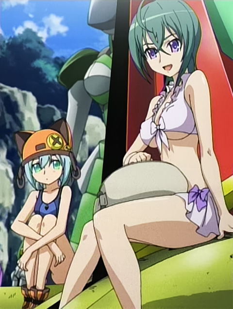 前回で宇宙空間から地球に墜落した面々。まぁ、自力大気圏突入の能力があったことになって、無事?地表に墜ちましたが、地球の7割は海なワケで。濡れ鼠になったQTガールズ三人は、いつきに装備されていた水着に着替えました(w