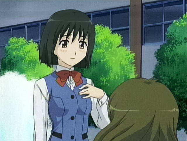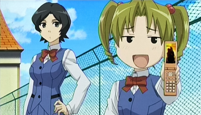 純夏が、きょりちゃん(1枚目のキャプの右 ・ CV 加藤英美里さん)お薦めの女の子を誘おうと奔走している間に、そのエサとして用意していた女装っ娘モデルのクラスメート ・ 朱宮くん ↓ (モデル名 ・ 山崎あけみ)とはちあわせてしまい。。。